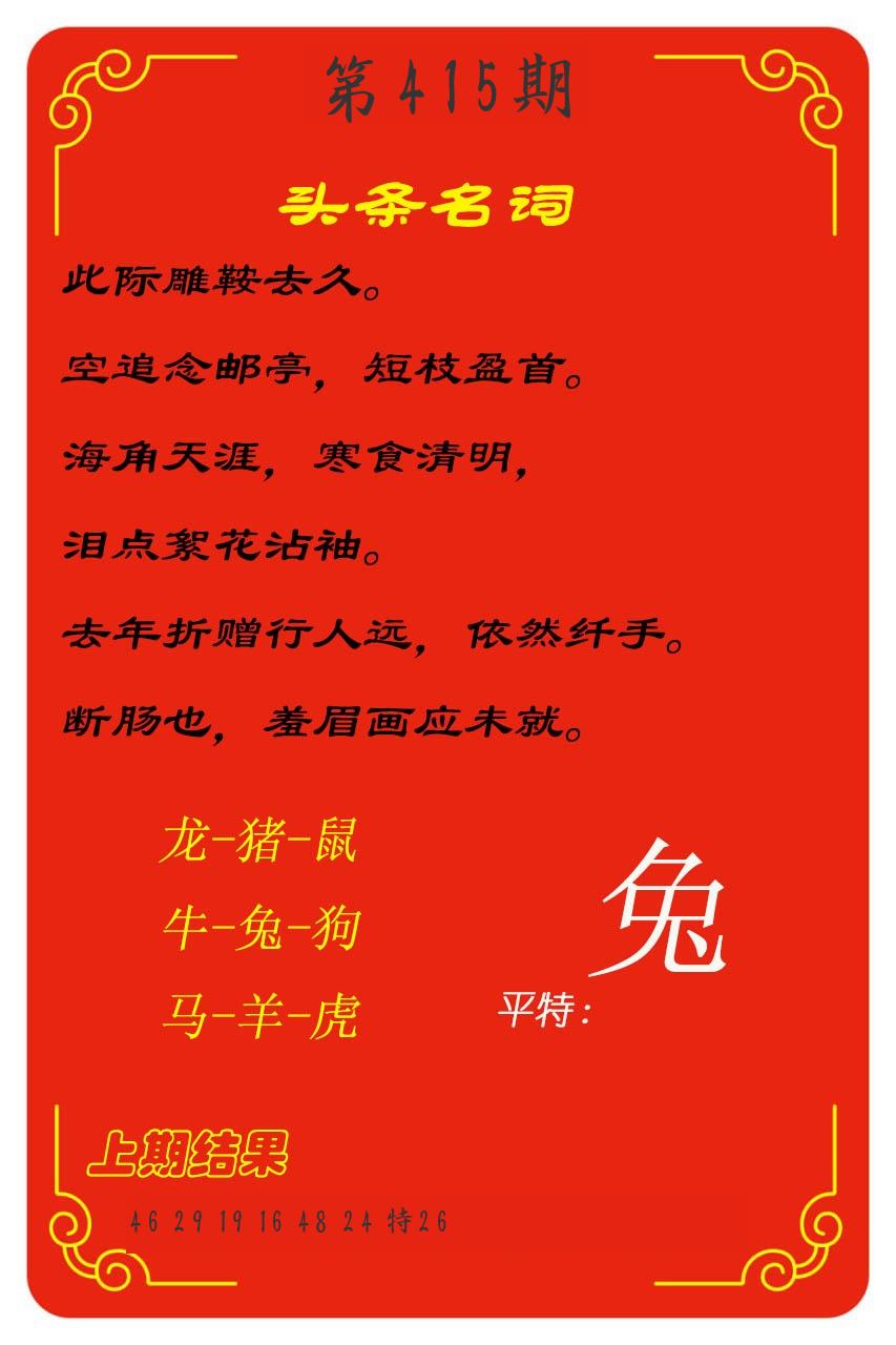 0415期推荐五肖: ~~稳准狠