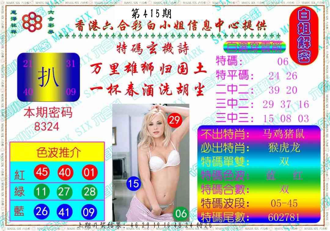 0416期绝杀一波 蓝波 28兔对
