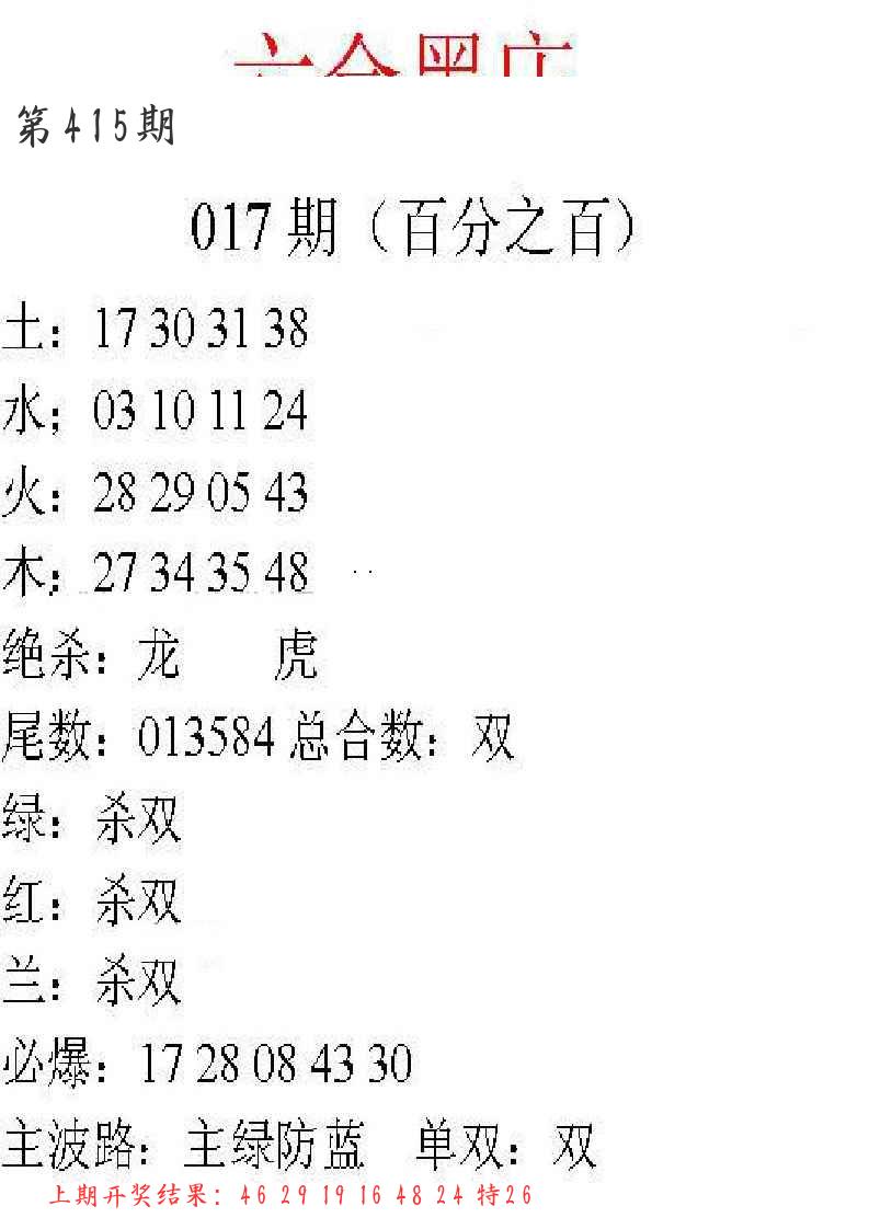 0417期绝杀一波 【红波】 ???????